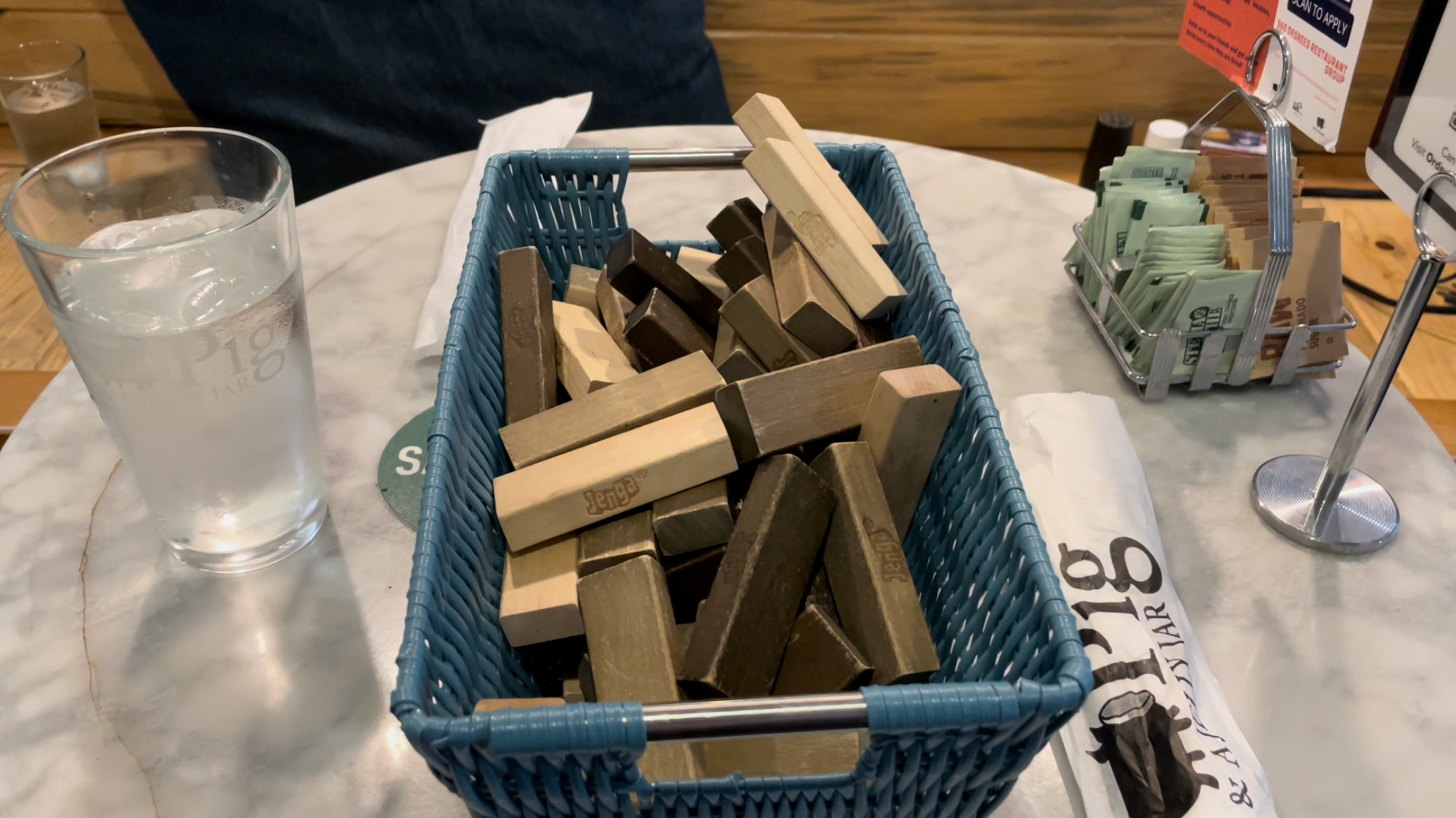 매장 자리에 앉으면 구비되어 있는 젠가...
